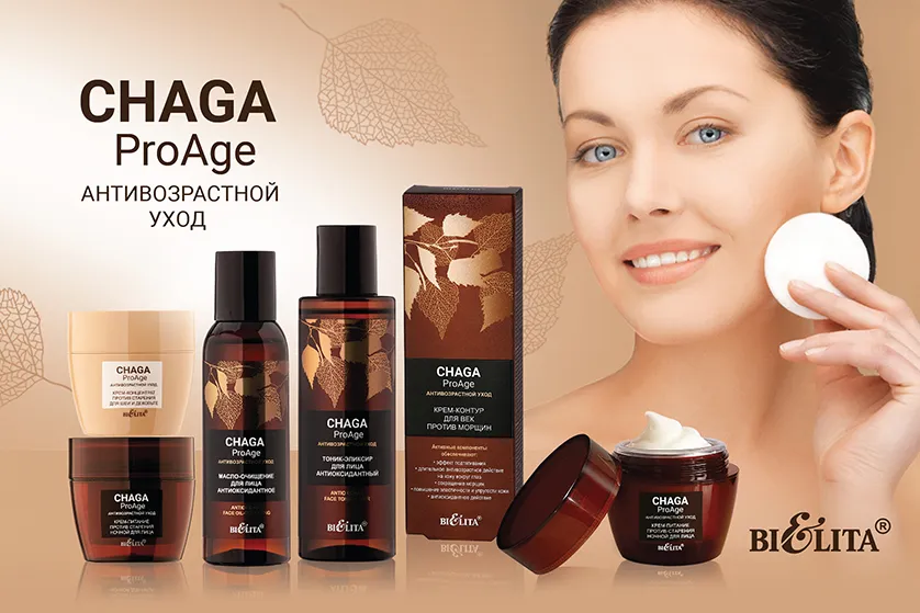 Экстракт чаги буквально способен обращать время вспять. Кожа под его воздействием становится более упругой и эластичной, а пигментные пятна, отечность и темные круги под глазами уходят в небытие. Немаловажной особенностью чаги является способность к повышению устойчивости кожи к воздействию внешнего стресса. Благодаря своему мощному антиоксидантному и противовоспалительному действию, экстракт арктической чаги не только стирает морщины, но и укрепляет, подтягивает кожу, выравнивает тон и улучшает цвет лица, укрепляет сосуды.