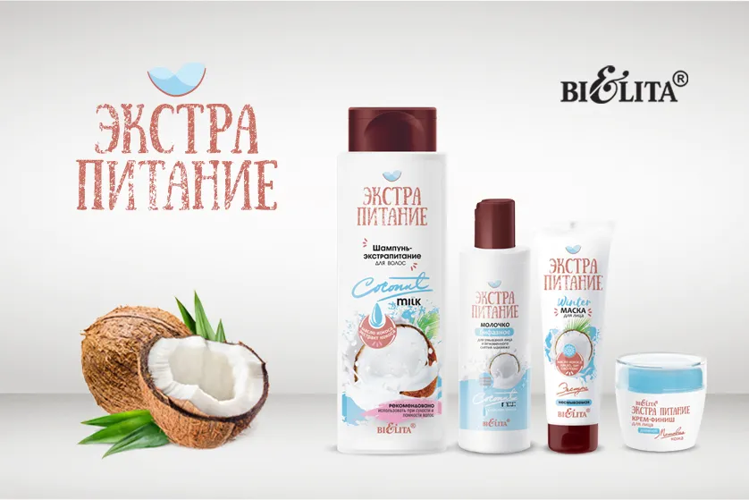 Масло кокоса – настоящая находка, удивительное вещество, известное своими полезными свойствами. Компания БЕЛИТА взяла за основу этот потрясающий компонент и создала серию Экстрапитание, которая поможет в уходе за волосами, кожей лица и тела.
